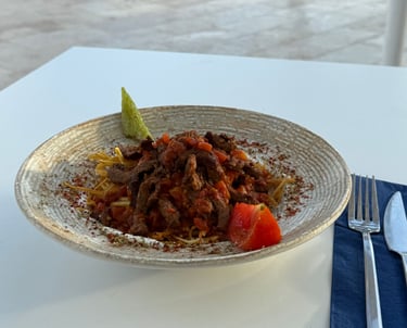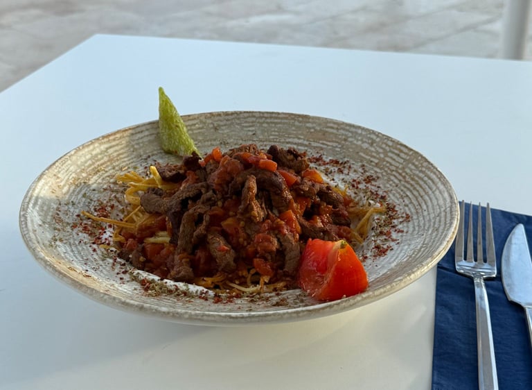 Ege’nin vazgeçilmez lezzetlerinden Çökertme Kebabı, incecik kızartılmış patateslerin üzerine özenle sotelenmiş dana bonfile etinin yerleştirilmesiyle hazırlanır. Sarımsaklı yoğurt ve özel tereyağlı sosuyla buluşan bu tabak, hafifliği ve doyuruculuğu bir arada sunar. Geleneksel lezzeti modern bir sunumla Castello Aspat mutfağında keşfedin.