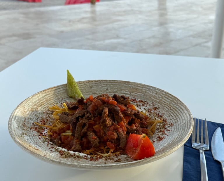 Ege’nin vazgeçilmez lezzetlerinden Çökertme Kebabı, incecik kızartılmış patateslerin üzerine özenle sotelenmiş dana bonfile etinin yerleştirilmesiyle hazırlanır. Sarımsaklı yoğurt ve özel tereyağlı sosuyla buluşan bu tabak, hafifliği ve doyuruculuğu bir arada sunar. Geleneksel lezzeti modern bir sunumla Castello Aspat mutfağında keşfedin.